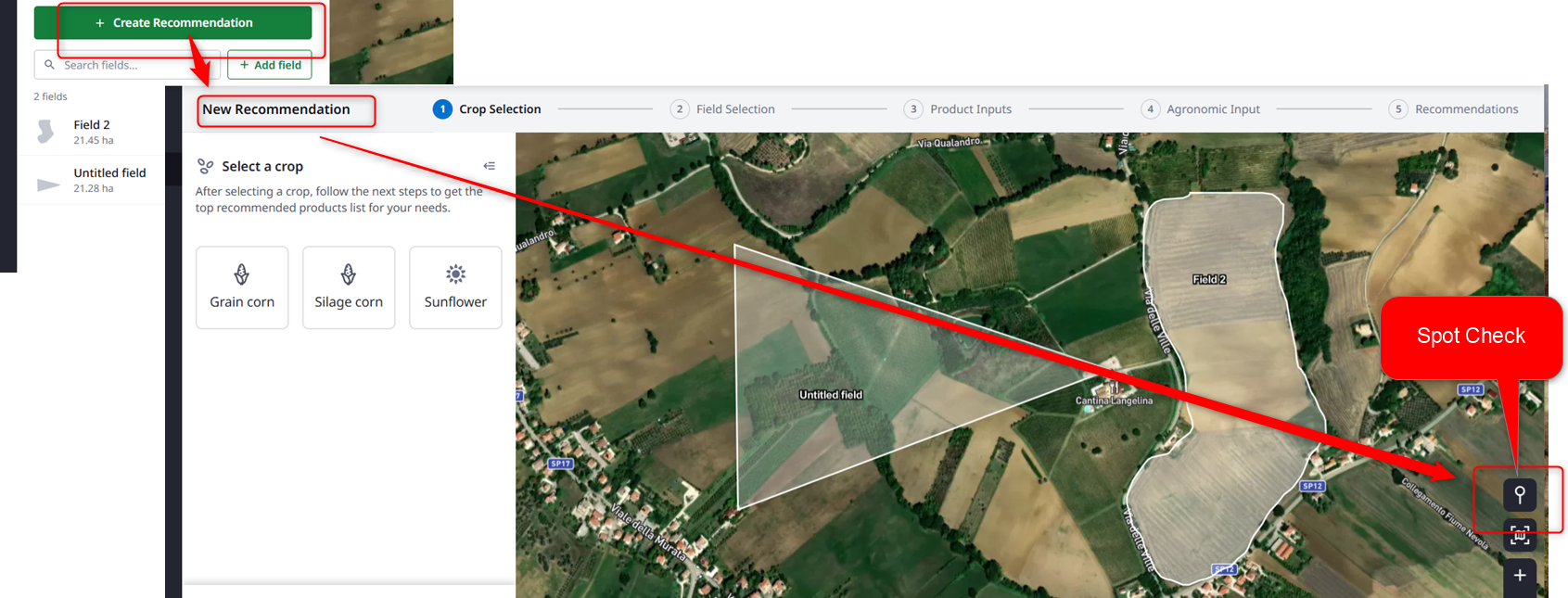 After selecting either Multifield or Spot Check, continue following the on‑screen steps to complete the recommendation. The workflow and logic remain the same as in the previous version of the user interface.