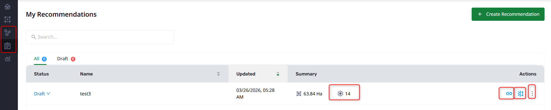 - Select a Farm After selecting a farm, the recommendation creation options will appear.
