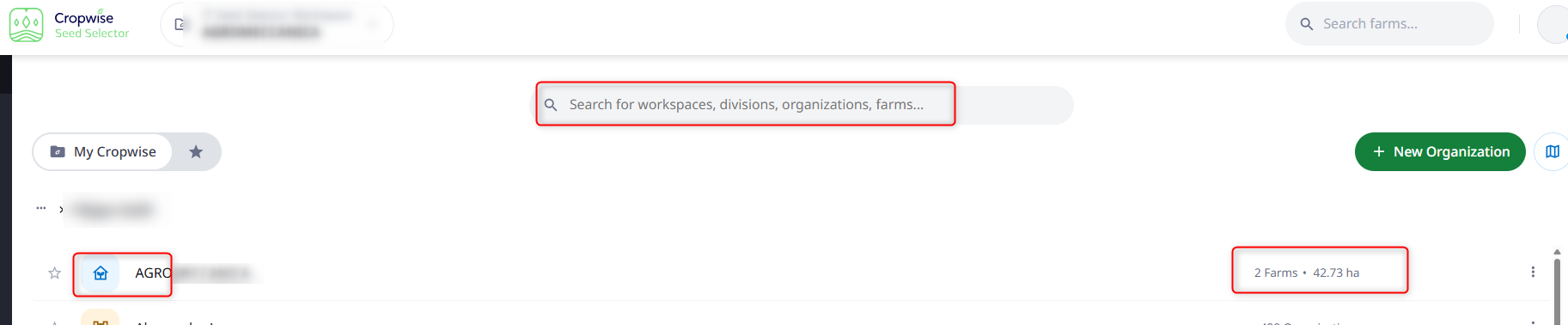 Start by choosing the organization for which you want to create a seed solution. Once selected, the system will display all farms associated with that organization.