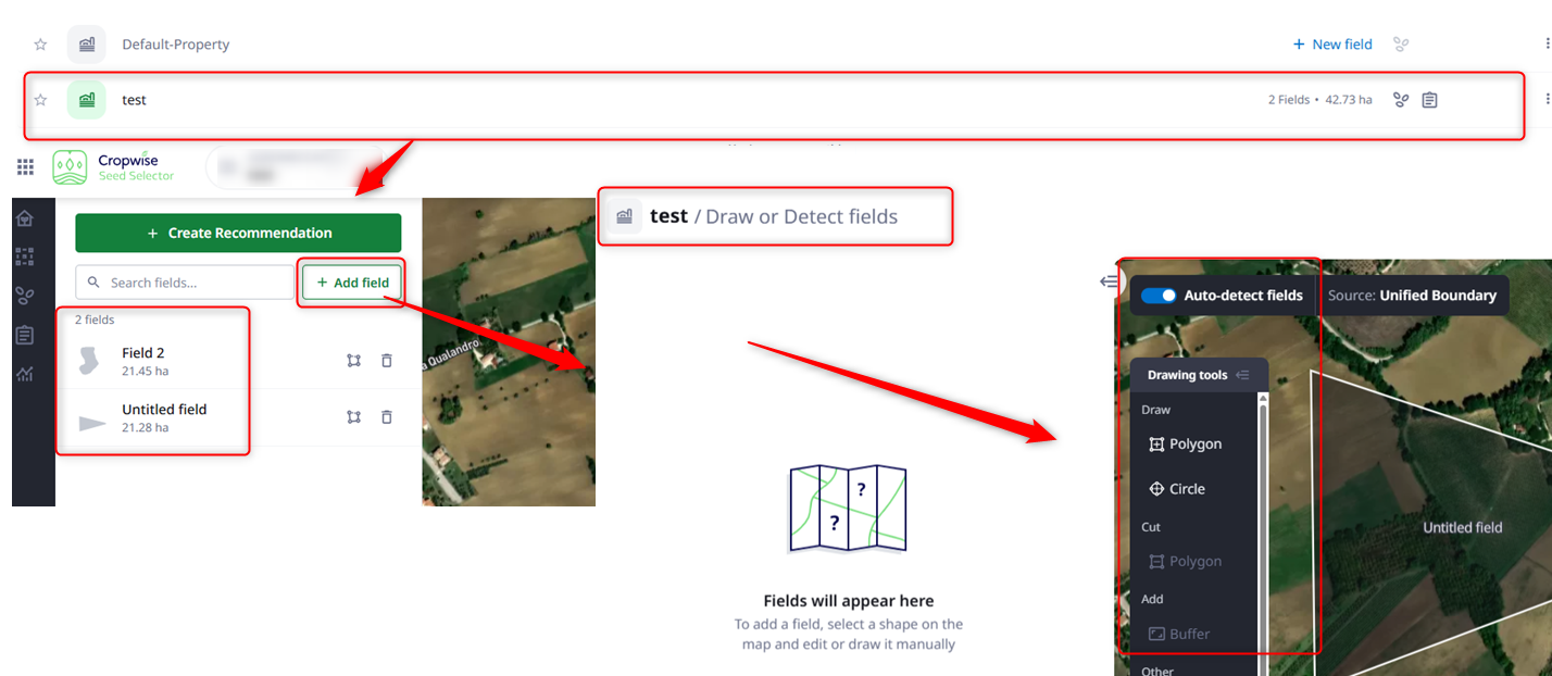 A detailed, field‑by‑field recommendation based on actual fields stored in the system. This option is best used when planning for a grower’s full season and working with their real field boundaries.