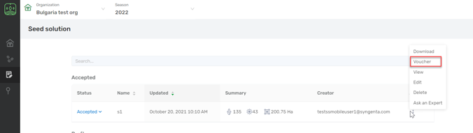 After you create a recommendation for an organization, you can generate an e-voucher for your seed request.