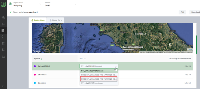 - Save your solution and the SKU will be applied to hybrids in all the fields in solution.
