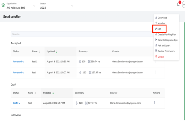 - You need to go to Seed Solution module.