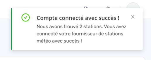 Un message indiquera que votre compte a été connecté avec succès à votre/vos stations météo(s), avec le nombre de stations météo trouvées.