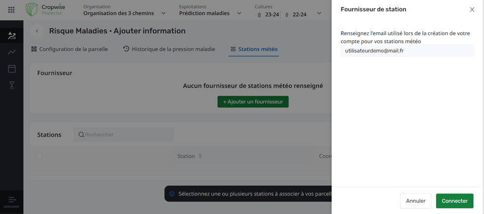 Pour ce faire, il est nécessaire de partager les données de vos stations météo à Cropwise.