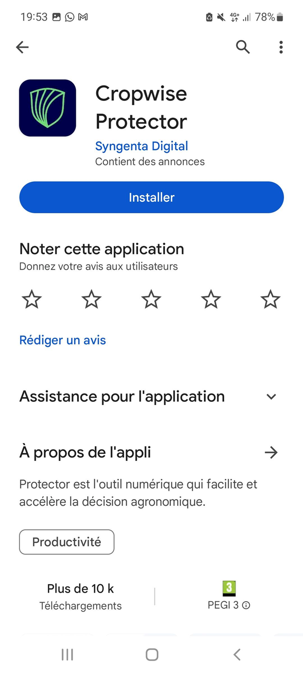 Pour télécharger l'application Protector, accédez à l'App Store/Play Store et recherchez « Cropwise Protector » :