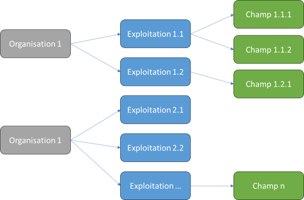 - Qu’est-ce qu’une exploitation ? Une exploitation est la représentation numérique de votre exploitation agricole, où vous pouvez enregistrer, définir et gérer vos parcelles. Une exploitation fait partie d'une structure aussi nommée organisation. Une organisation peut avoir plusieurs exploitations gérées selon des directives similaires.